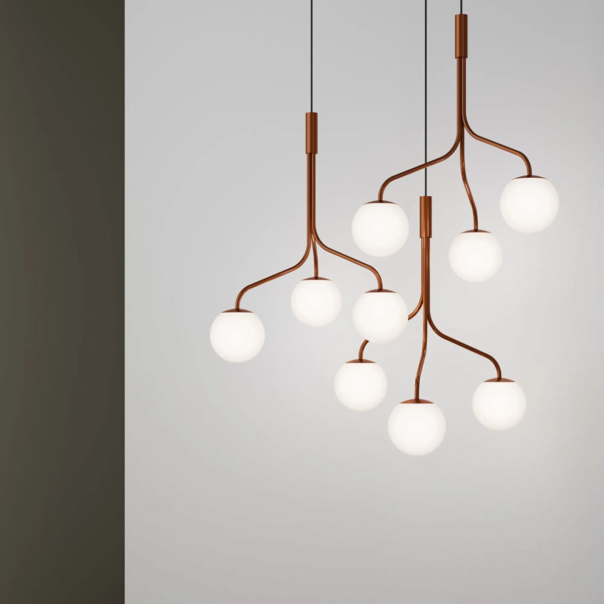 The Curve Cluster Single Large Pendant Glass is a stunning tribute to the harmony of nature and modern design. Created by the Swedish collective Front Design, its gracefully curved metal arms evoke organic shapes, cradling three opal glass globes that cast a soft, inviting glow.