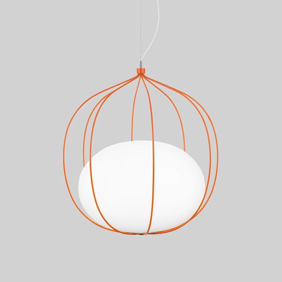 The Hoop Small Pendant defines modern refinement with its seamless blend of minimalist elegance and organic fluidity. A matte opal glass diffuser, enveloped in a precisely crafted cage-like aluminum frame, emits a warm, inviting glow. Its graceful profile, shaped through soft wire bends and a subtly flattened orb, offers a striking yet understated aesthetic. Available in white, blue, black, or orange, this meticulously designed piece brings elevated sophistication and exceptional craftsmanship to contemporary interiors.