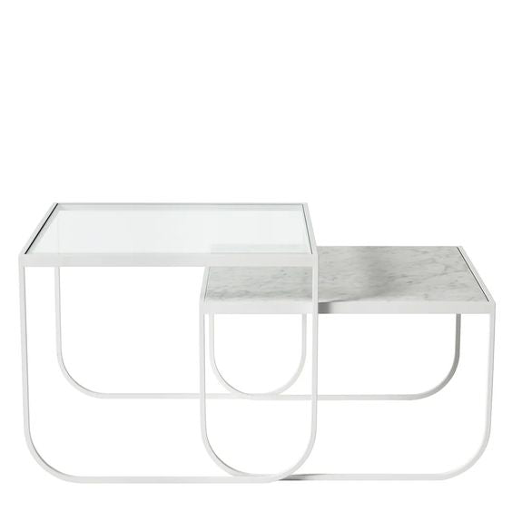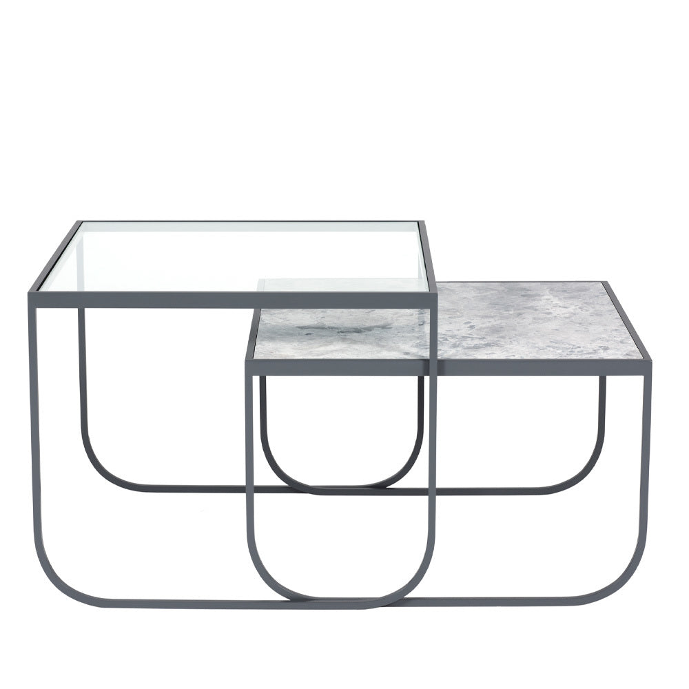 Coffee table with a bent metal structure. Tati Coffee Table 63,5 Low can be slid under Tati Coffee Table 63,5 High.
