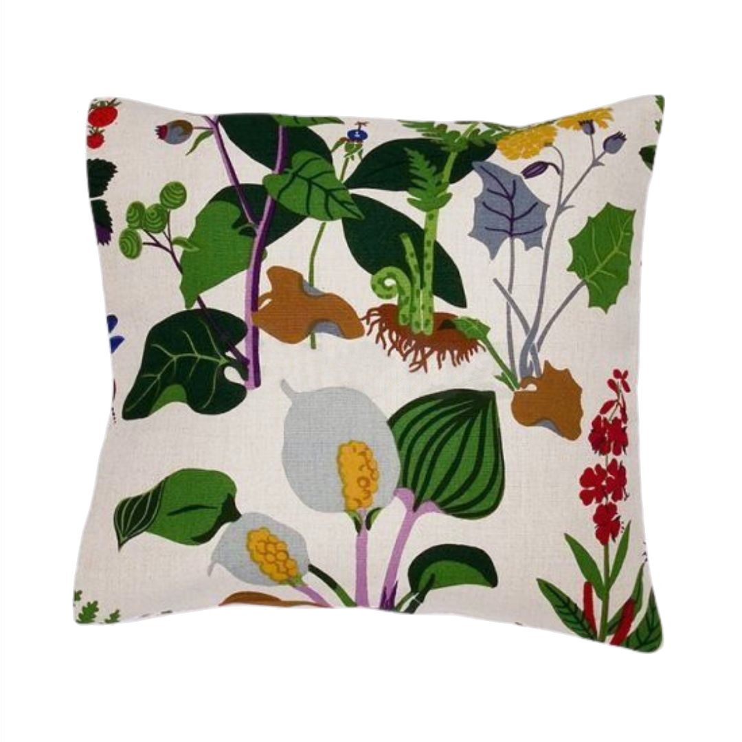 Pillow made of luxurious linen featuring native wildflowers and verdant plants in vibrant colors. It is an effortless way to bring the beauty of nature indoors while adding extra comfort to chairs and sofas. Please note that each pillow is cut from a different section of the pattern repeat and is therefore unique.